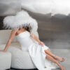 Despite its statement size, the hat weighs less than 200 g and secures comfortably via an adjustable silk headband hidden beneath the plumes, ensuring a slip-free fit from ceremony to after-party. Pair it with a sleek column dress for striking contrast, or layer over a silk slip for a fashion-forward civil ceremony look. Whether you’re channeling avant-garde bridal vibes or adding drama to a gala ensemble, this feathered masterpiece delivers instant runway magic.