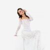 The open shoulders and long lace sleeves add an element of allure, while the adjustable corset ensures the perfect fit, allowing you to showcase your figure with confidence. Whether you’re walking down the aisle or twirling on the dance floor, Flirt is sure to turn heads and leave a lasting impression.